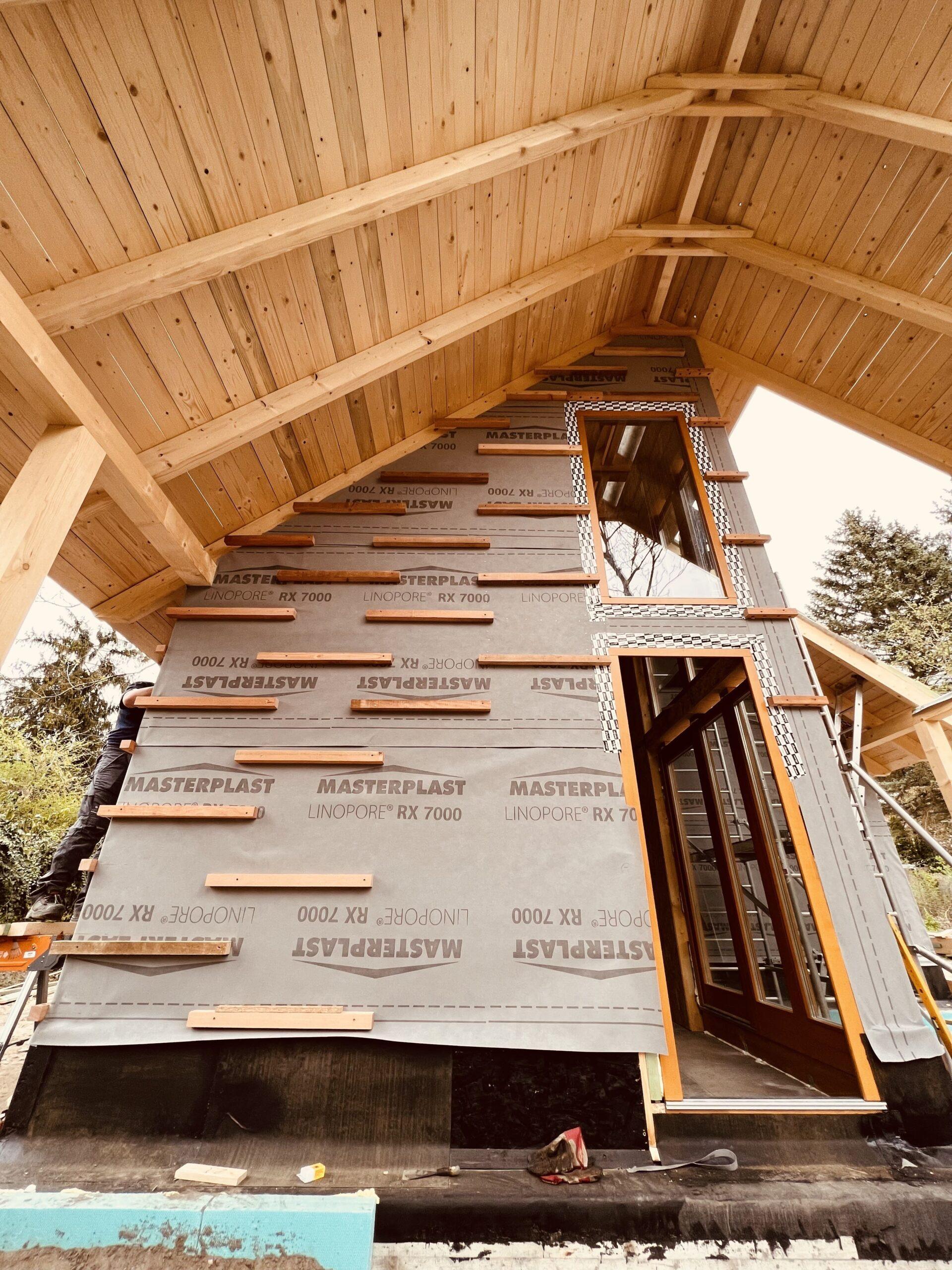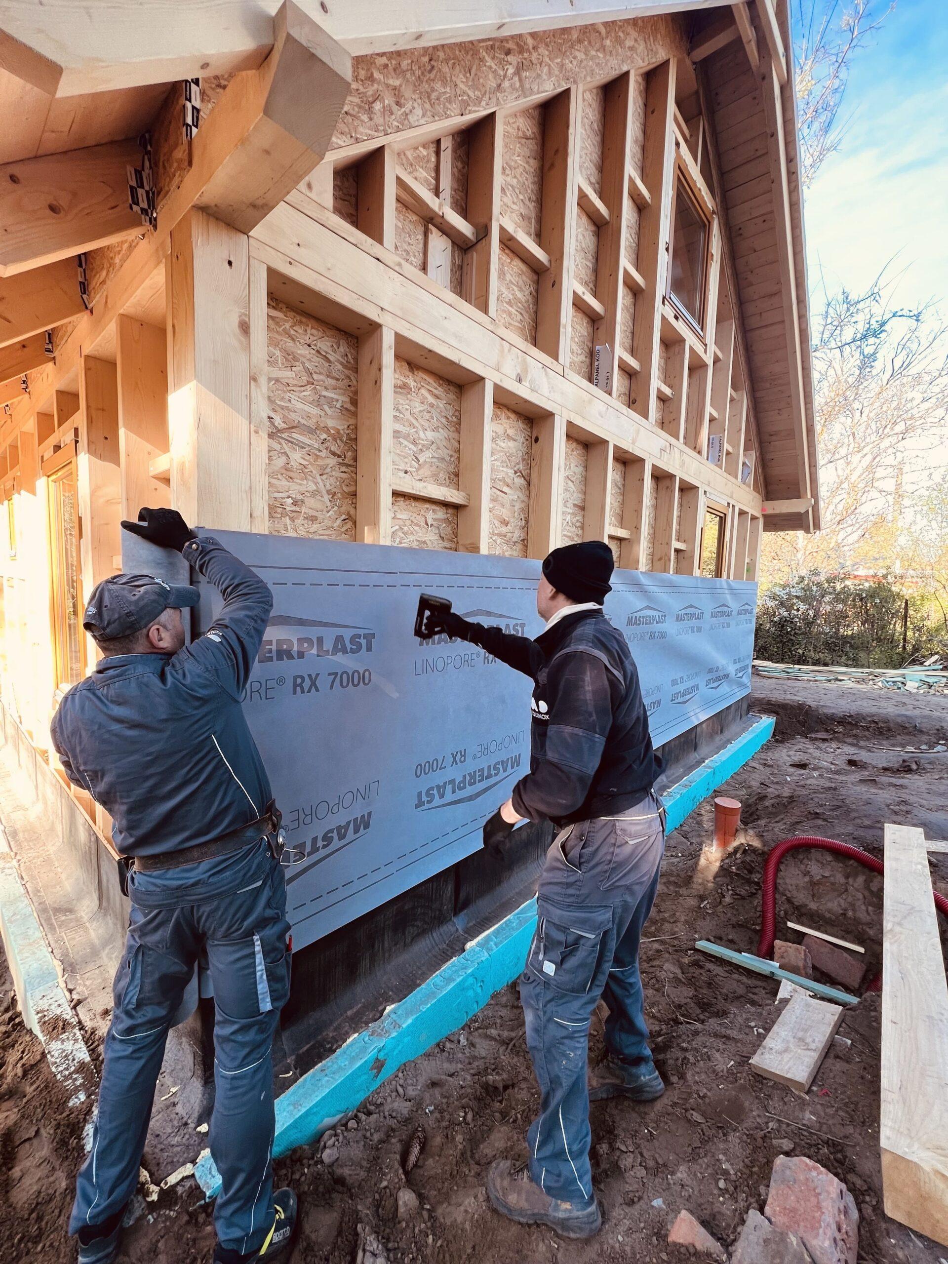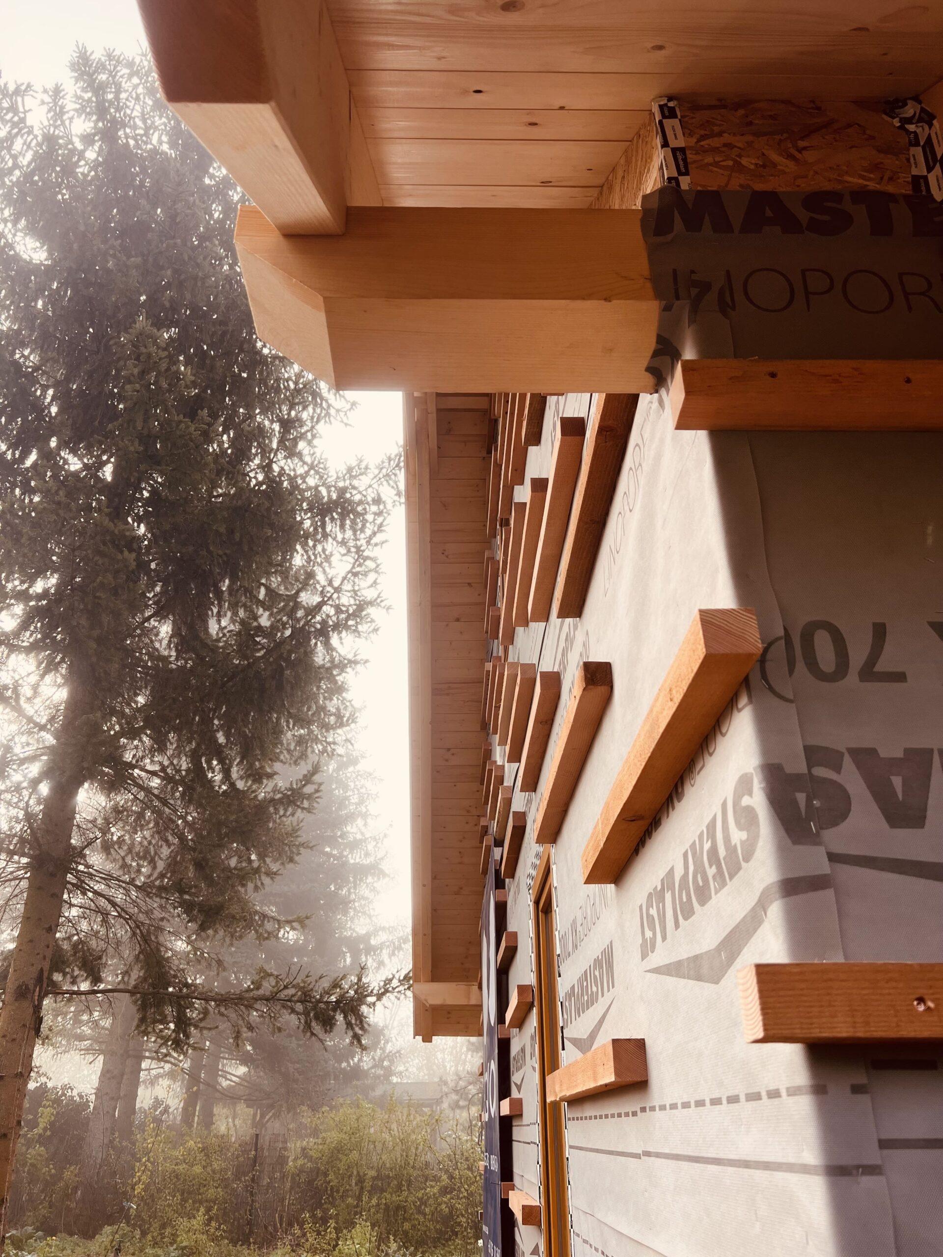 Az épület tartószerkezetét (fal és tetőszerkezet) kiviteleztük, melyet előszárított hossztoldott lucfenyő gerendákból (ún. KVH szerkezet) álló keretekből és hagyományos szarufás tetőszerkezetként terveztünk és építettünk meg. Ennek az anyagnak az előnye, hogy mérettartó, az előszárítás és a precíz gyártási folyamat eredményeként rendkívül stabil és szilárd, valamint a kevesebb víztartalom miatt jóval kevésbé vetemedik.